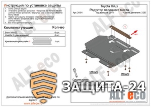 → Защита редуктора переднего моста Toyota Fortuner 2012-/Hilux 2006-