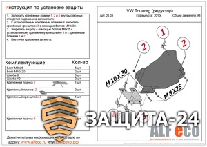 Защита редуктора заднего моста Volkswagen Touareg 3,6 20110- . Артикул: alf26.03