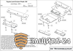 Защита {рул. и карт.} TOYOTA Land Cruiser 120 (Prado) без штатной защиты (2002 - 2009) 4 (кузов: J12. Артикул: 24.0753 v2