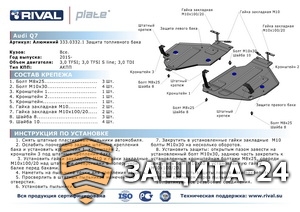 → Защита топливного бака Rival, , AUDI Q7 V - 3.0TFSI, 3.0TFSI S-Line, 3.0TDI, 2015-, крепеж+ алюминий